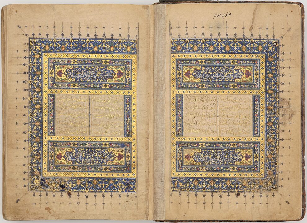«Маснави» состоит из шести томов (дафтар), включающих 25–26 тысяч двустиший (бейтов):