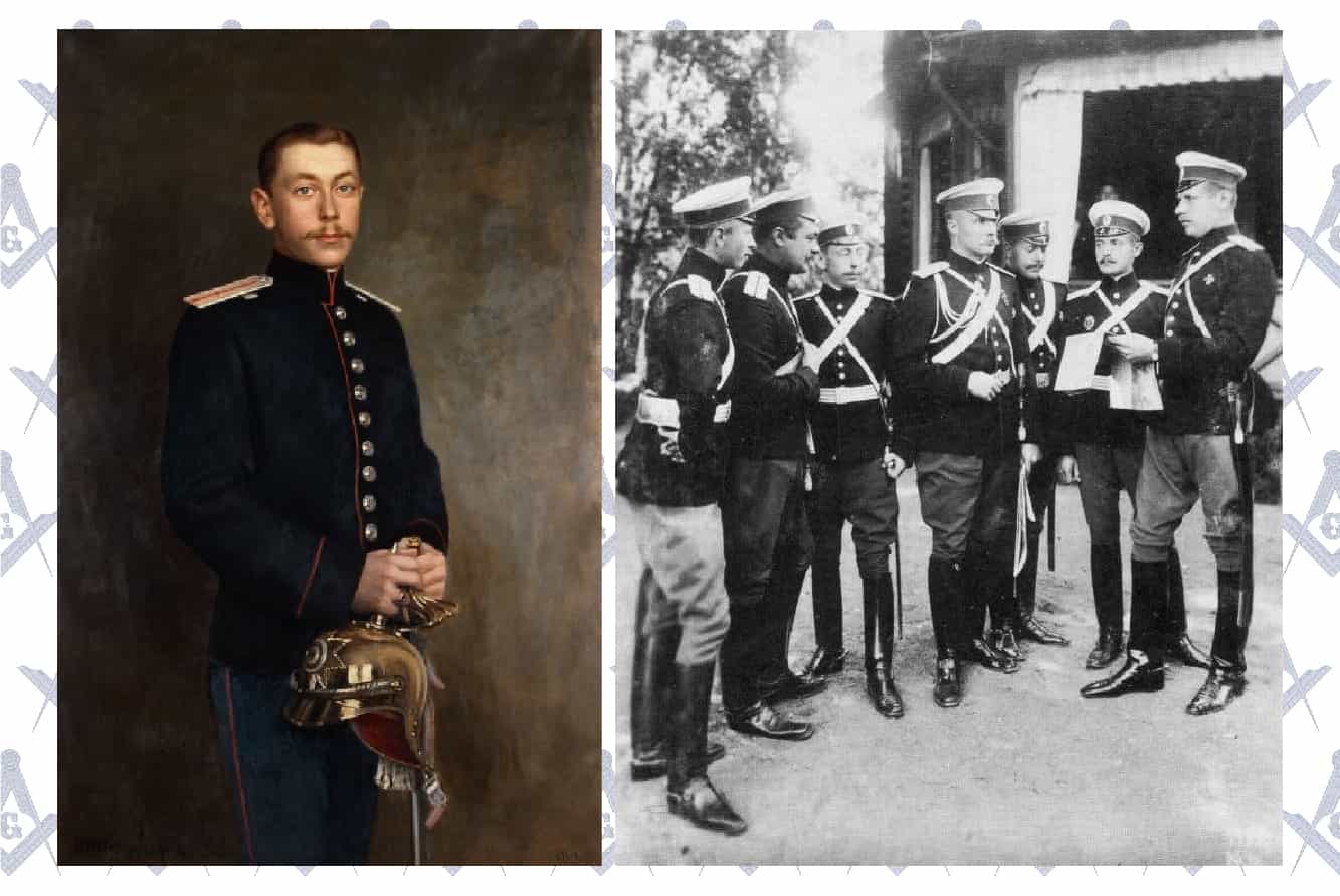 Поручик Кавалергардского полка, камер-юнкер. На одной из прилагаемых фотографий (на чёрно-белой вместе с сослуживцами – офицерами кавалерийского полка) – третий слева (слева направо на этой фотографии: Левшин, Граббе, Шереметьев, Скоропадский, Звегинцев, Баранов, Родзянко)